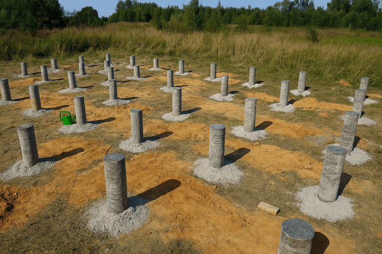 Обычно фундамент ТИСЭ обходится дешевле, чем монолитная плита или ленточный фундамент, особенно на небольших участках и в условиях сложных грунтов. Это делает его выгодным решением для загородных домов, бань и небольших построек.