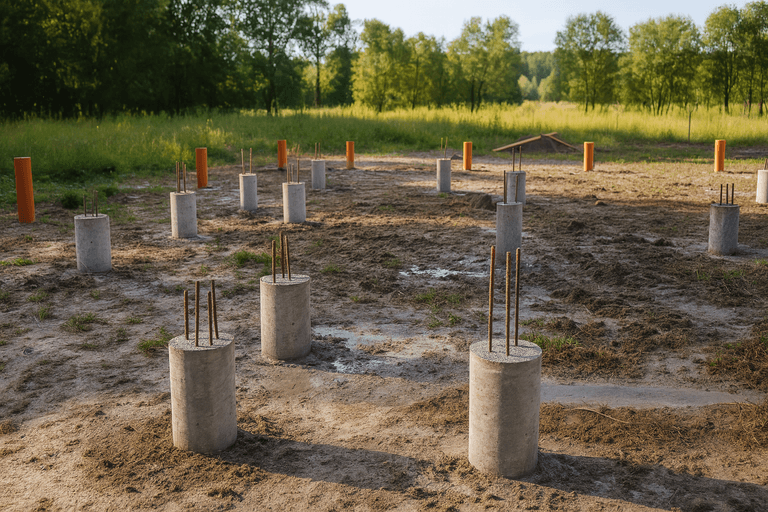 Технология фундамента ТИСЭ основана на бурении скважин с уширением основания и армировании с последующей заливкой бетоном. Такой фундамент считается оптимальным решением для строительства домов различного масштаба, особенно в условиях слабонесущих или пучинистых грунтов. Мы предлагаем реализацию фундамента ТИСЭ под ключ с соблюдением всех норм СНиП и точной проработкой каждого этапа.