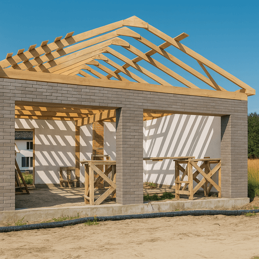 Подбирается конструктивная схема — односкатная или двускатная крыша. Определяются материалы для стропильной системы, утеплителя, паро- и гидроизоляции, а также финишного покрытия. Это важный этап для точного понимания, сколько стоит построить крышу гаража. - Монтаж стропильной системы